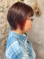 【ショート】カラーは【全体がピンクブンラウン系イヤリングカラーはワインレッド系】*PEDALはお客様の想いを尊重し似合う髪型のご提案をさせていただきます◎ナチュラルなテイストで普段のスタイリングをラクに楽しみたい方、是非ご相談ください*