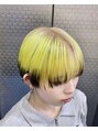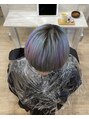 カラートリートメントの残留からの2回ブリーチで、デザインカラーに
