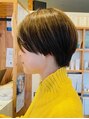 サイドの内側を、刈り上げないぐらいの短さに削らせてもらいトップの毛をかぶせて丸いシルエットになるよう仕上げました。サイドと襟足はタイトに収まるよう量調節しました。カラーはトップにエアタッチでハイライトを自然になるよう入れてあります。