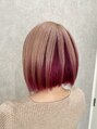 - 刈り上げ+カット+ブリーチ+ONカラー2色 前下がりカット ダブル―カラー アンブレラカラー ワイン