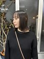切っぱなしボブ顔まわりはほんのり前上がりが可愛い。ワイドバングには耳掛けもバランス良いです。