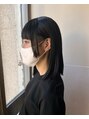 切りっぱなしの前下がりボブスタイル。顔周りの短い毛もアクセントに作って、個性的な印象に。