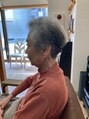 デザインパーマトップの髪が伸びてきて潰れた印象でしたので一旦短くサッパリカットしパーマデザインをご案内させて頂きました。