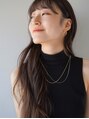 思い切って切り込んだ前髪が印象的なヘアスタイル、ベースは重めのロングスタイルに少しレイヤーをMIXして巻いた際に動きやすくしています。カラーはブラウンにブルーをプラスして深めのカラーでも透け感を感じるように。