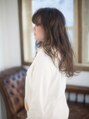 Aラインシルエットにウェーブがしっかりとでるように無造作パーマ。目上レングスの前がみがアンニュイな雰囲気☆カラーはボリョーム感がですぎないように透け感のあるミルクティーで抜け感をプラス☆似合わせしやすいスタイルに仕上げています