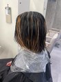 - ハイライトカラー/ブリーチ1回/コントラストハイライト/スライシングハイライト/ピンクカラー/ボブ