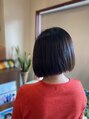 半年前はハイライトで髪色を楽しまれていました。それからばっさりカットして大人の黒髪ワンレンボブスタイルに。
