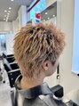 ザクザク質感なスパイキーショート。ブリーチ2回のピンクベージュ。根元の黒残しがポイント。、