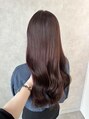 ブリーチ無しのピンクブラウンカラーパープル味のあるピンクをメインでカラーしているので赤すぎないほんのりパープル味のある可愛いカラーです◎ブリーチ無しでもここまで可愛い色にできます◎