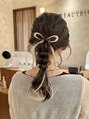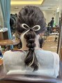 リボンアレンジ もこもこアレンジ 編みおろしセミロングアレンジ