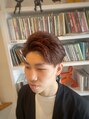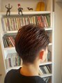 後ろに流しても、前に下ろしても大丈夫なメンズショート。ハードジェルとハードスプレーでスタイリングしています。