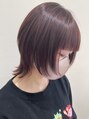 前髪重めのウルフスタイル。ブリーチなし、赤10レベルで染めています。