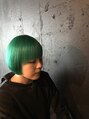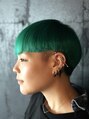 個性派アシンメトリーグリーン!!最高にクールなグリーンでカットもしっかりと個性的に決めてみました!カラーはカラートリートメントでグリーンに![元住吉駅/元住吉美容室]