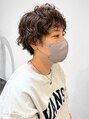 ショートの強めパーマです。前髪まだしっかりかけてます。ここまでしっかりかかってるとセットは格段に楽々です。カラーはマットグレージュです。