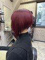 クリエイティブな仕上がりがオーダーだったのでバックは刈り上げ、そこから前下がりに極端にカットして顔周りにレイヤーを入れて遊びを足したスタイルに仕上げてます!カラーはカシスピンクに染めました!