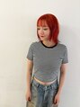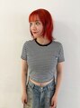 ダブルカラーでつくるビビッドオレンジ春カラーウルフ前髪は眉くらいにぱつっと。淡くなくしっかりいれたオレンジがキュートな印象に
