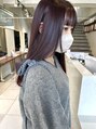 ツヤ感たっぷりのチェリーレッドカラー。赤、ピンクだけじゃなくパープルのカラー剤も使っています。色味もしっかりあるのでナチュラルすぎない可愛さです。