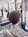 えりあしをすっきり短めにしたショートヘアです。カラーは褪色しても黄色くならないよう『ラベンダーアッシュ』を入れています。