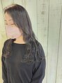 胸下ラインで毛先に厚みを残してカット。前髪は鼻下でかきあげて流しやすいようにカット。カラーはベースが明るい状態からアッシュブラックに仕上げました。