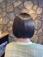 - ボブ 船橋 切りっぱなし ハイトーンカラー 前髪パーマ ぱっつん前髪 ボブパーマ アースカラー