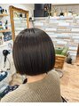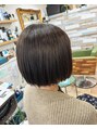 カット、マグネットカラー。顎下のミニボブ。ストレートボブ。チャコールグレーで少々トーンダウン。マグネットで色持ち柔らかカラー。