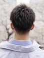 スッキリ短めのアップバング!バングは眉上、サイドは耳上、襟足は刈り上げ。ソフトツイストパーマをかけると無造作感が簡単に出せます!〔メンズヘア/渋谷/パーマ/ツイストスパイラル/アップバング/ツーブロック/刈り上げ〕