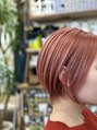 丸みショート+ブリーチオンカラーで淡いピンク系で仕上げました。オイル&ストレートアイロンで仕上げました。