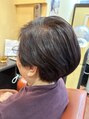 少々くせ毛のある、お客様です。90歳になる方ですが、その年齢を感じさせないようにグラボブにしましたが気に入っていただいて、月に2回、カラーカットにきていただけるようになりました。