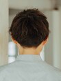 耳周り、バックをすっきりと短くしたさわやかなツーブロックのアップバングスタイルです。前髪は、黒目の上からしっかりとあげることでバランスの良いスタイルに。全体の毛先は無造作に動かして毛束感をプラスしています。