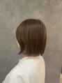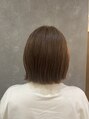襟足短めで表面は少し長めに、バックからサイドに真っ直ぐ繋いだボブです。前髪は眉くらいからサイドバングを作りました。