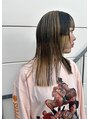 ぱつっと切り揃えたセミロングにvバング、フェイスレイヤーでポイントを。ブリーチ抜きっぱなしのハイライトをランダムに入れてロックな仕上がりになりました!