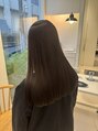 やわらかいチョコレートカラーとぱっつんロング♪ストレートのスタイリングでオイルつけるだけでもとても可愛いです(^^)