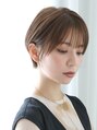 襟足は短いショートボブスタイル、ショートカットでも低めの丸みにすることで流行りのショートスタイルにしてます。サイドは耳にかかるぐらいで顔周りは耳にかけた時を考えて作り込んでいます。カラーは落ち着いたココアブラウンに。