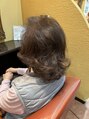 毛が細く毛量も多くないので、パーマをかけて仕上げにアイロンでカールを作ってボリュームを出しました。