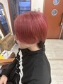 ブリーチ一回の桜ピンクメンズ/メンズカット/メンズパーマ/ツーブロック/ツイストスパイラルパーマ/ツイストパーマ/スパイラルパーマ/眉毛/センターパート/ナチュラルヘア