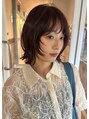 肩につく長さで切りっぱなしロブにし、コテでランダムに巻き可愛らしい雰囲気に!