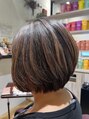 明るめの白髪ぼかしカラーでハイライト風ショートボブ(^^)