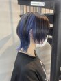 気に入ったスタイルは【ブックマーク】ボタンを押してカウンセリング時にご提示ください。気になることは当日カウンセリング時に気軽にご相談ください。【柏/ウルフ/中性ウルフ/セクションカラー/ブルー/デザインカラー/アンブレラ/ブルーバイオレット】