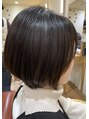 前下がりボブ。前髪と顔まわりら流れるようにつなげて軽い印象に。