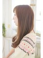 内巻きロングヘアー。短めの前髪が似合うワンカールヘアースタイルです。オシャレでナチュラルなヘアーが人気の秘訣です。