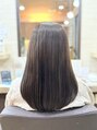 ロングワンレンスタイル。顔周りにレイヤーを入れてるので軽さと柔らかさが出ます!全体も縮毛矯正をかけてるのでアイロンで内巻きにすると柔らかくなります!カラー赤味抑えたグレージュのグレイカラーで春らしく少し明るめで!髪質改善TRで艶々のサラサラ