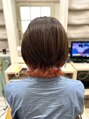 イメージチェンジ!カットも重めのボブがウルフスタイルに大幅チェンジ!いつも明るめの白髪染めをされているので変化をつける為にインナーカラーをいれました!一回ブリーチをしてベリーピンク、とてもお洒落で可愛いスタイルです。是非、お試しください。