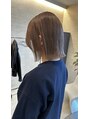 柔らかい質感になるよう、少し奥行きのあるミルクティーブラウンでカットはパッツリとヘイリーボブに