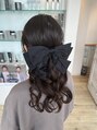 【ヘアセット】ハーフアップのアレンジ♪大きなリボンの飾りはお持込みいただきました(^^)最近はリボンの飾りを持ってこられるお客様が多い印象があります!