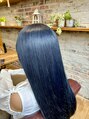 ブリーチ一回でできるブルーブラックです。暗髪だけど光の当たり具合でブルーが顔を見せてくれてオシャレなカラーです!