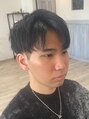 ツーブロックでサイドは耳が出る長さ、前髪は下ろしも分けもできる長さでカット。軽めの質感でワックスも馴染ませやすく、扱いの簡単なスタイルです◎