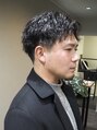 ハードなツイストパーマをマッシュベースのカットと低めの刈り上げで上品で甘めの印象に仕上げています◎