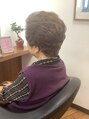 髪質が柔らかくコシがないので、全体にパーマをかけてボリュームをだします。毛量は多いので柔らかな女性ならではの軽やかな毛流れが出て大変素敵だと思います。