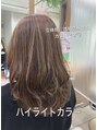 全体的ハイライトを入れて、透明感、立体感を楽しめるカラーです。細めのハイライトなので派手になりすぎず、大人でも楽しめるカラーです♪