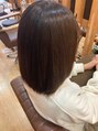 白髪の本数が高くしっかり染めると境界線が強く出てしまうので今回は白髪ボカシカラーのベージュブラウンをご案内させて頂きました。伸びてきても白髪のラインがメッシュになるので馴染みが良くとてもオススメですよ